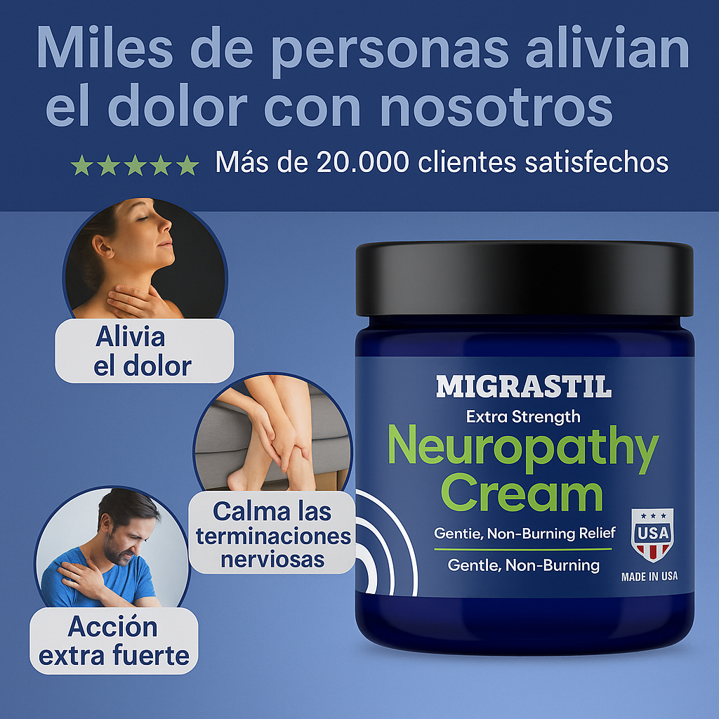 La Crema MIGASTRIL está formulada con magnesio y nutrientes esenciales que tus nervios necesitan para sanar, aliviando el dolor directamente donde más lo necesitas. A diferencia de las pastillas, su aplicación tópica evita el sistema digestivo, logrando una